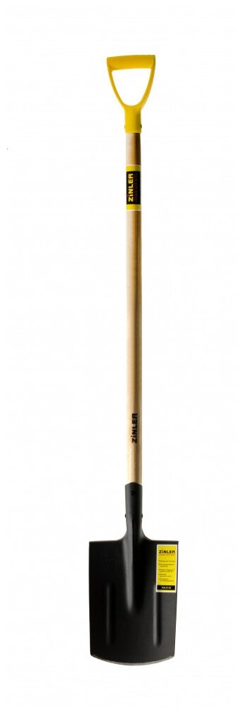 Лопата ZINLER Лопата штыковая прямоугольная с деревянным черенком и ручкой 960мм