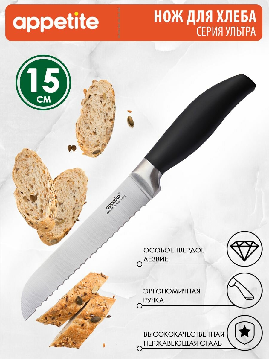 Нож из нержавеющей стали Ультра для хлеба 15см ТМ Appetite интересное: