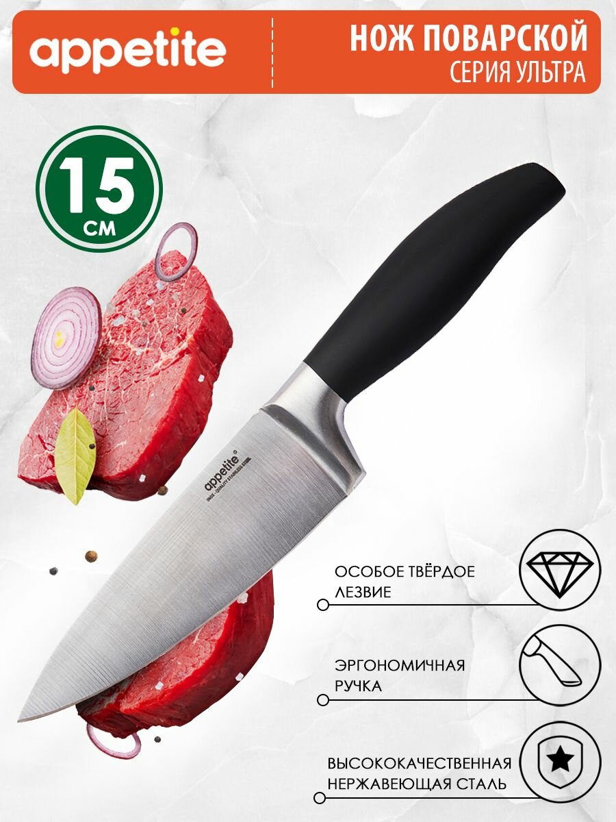 Нож из нержавеющей стали Ультра поварской 15см ТМ Appetite интересное: