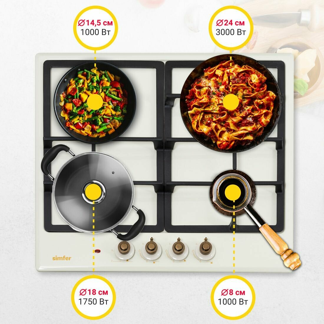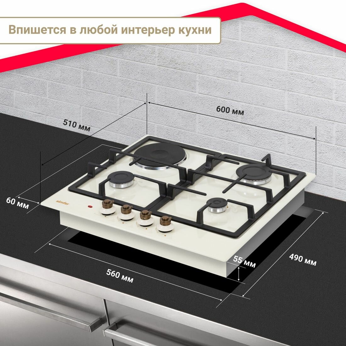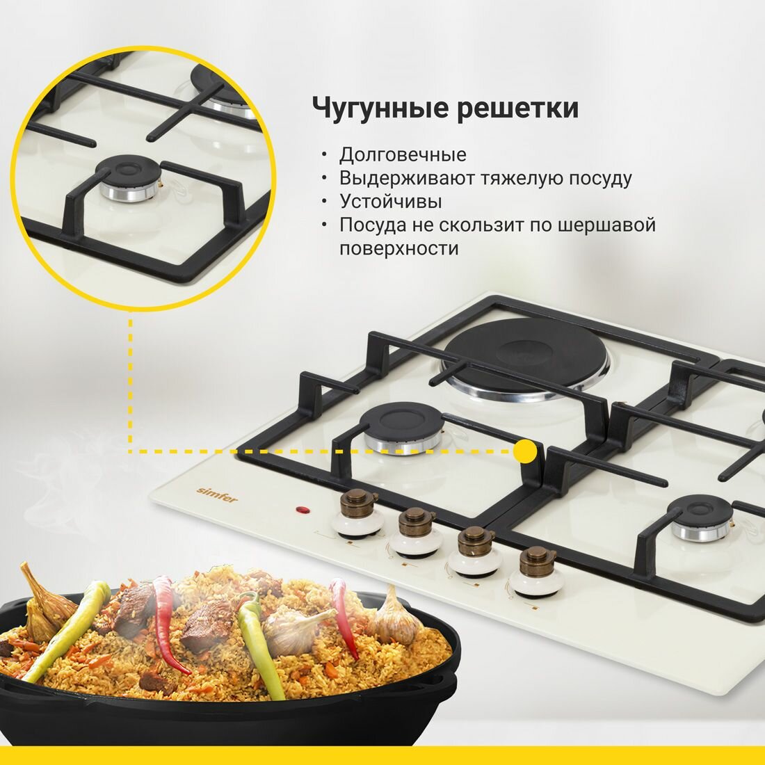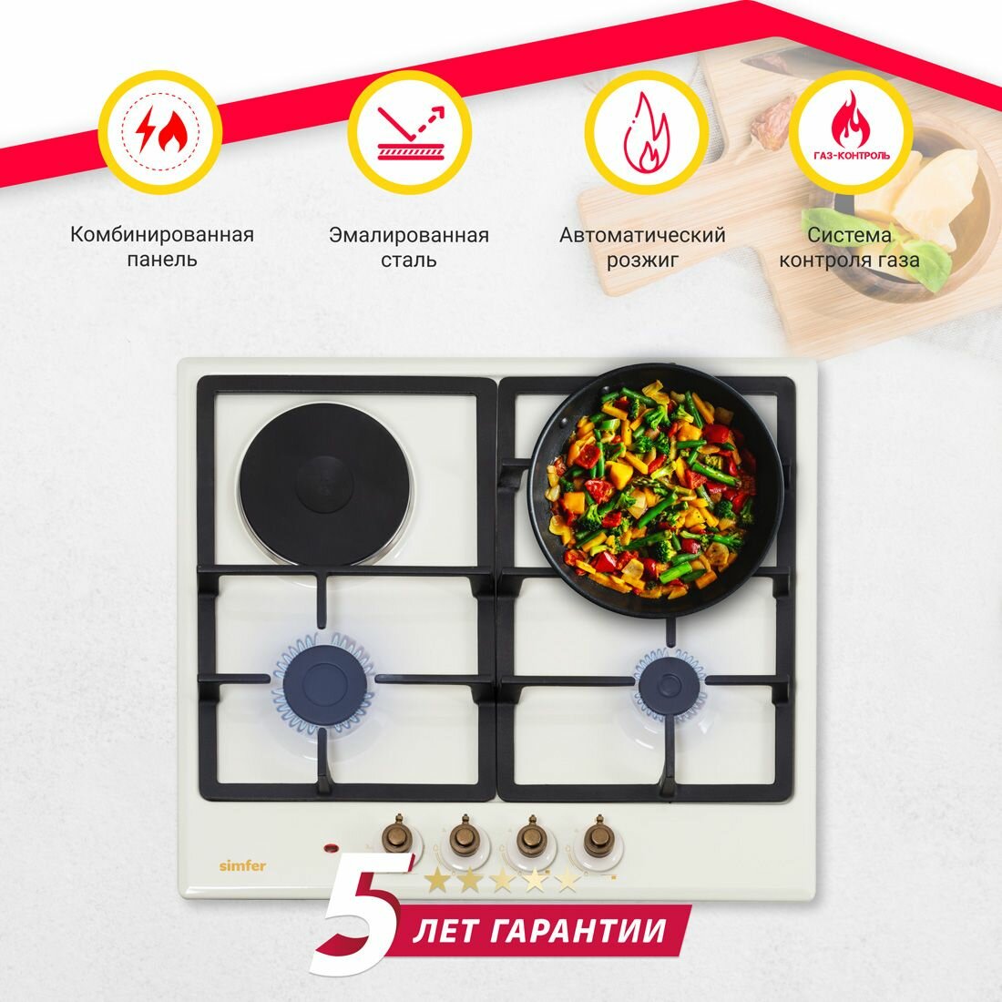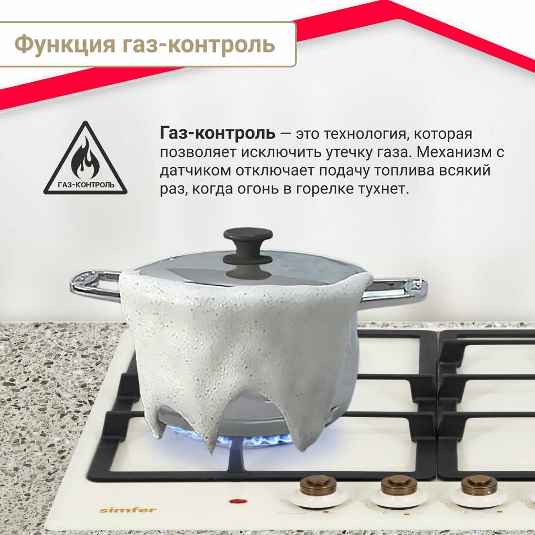 Комбинированная варочная панель Simfer H60V31O522, с газ-контролем, чугунные решетки интересное: