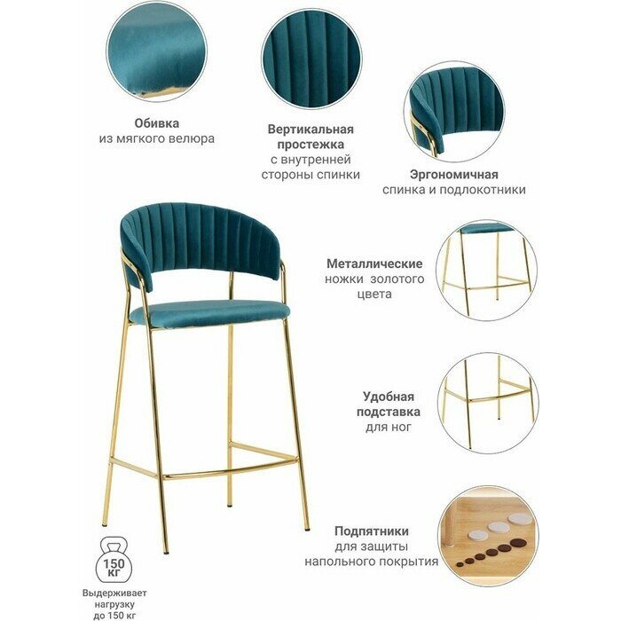 Полубарный стул Turin бирюзовый с золотыми ножками Bradex Home