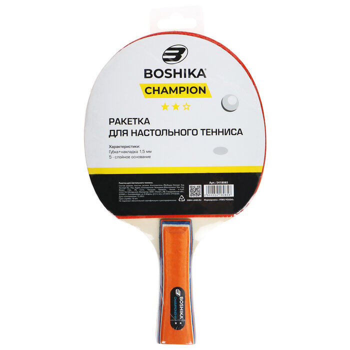 Ракетка для настольного тенниса BOSHIKA Championship, 2 звезды интересное: