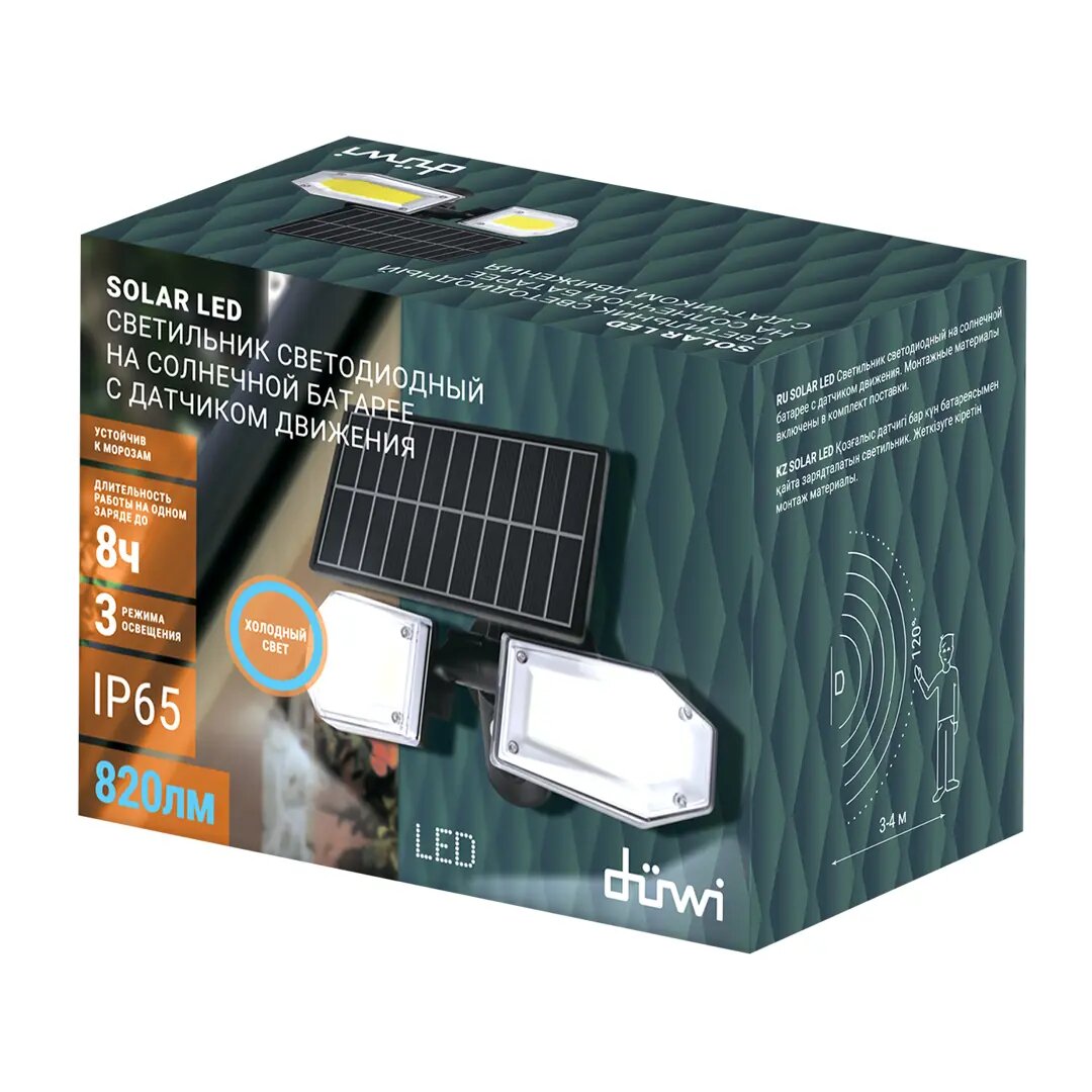 Купить Прожектор светодиодный уличный Duwi Solar на солнечных батареях 25 Вт 6500К IP65 с датчиком движения черный