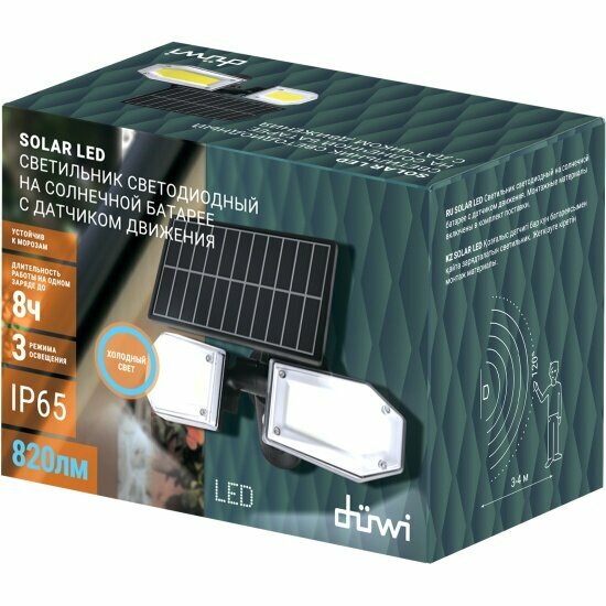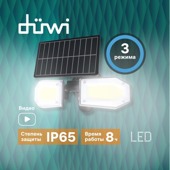 Прожектор светодиодный уличный Duwi Solar на солнечных батареях 25 Вт 6500К IP65 с датчиком движения черный интересное: