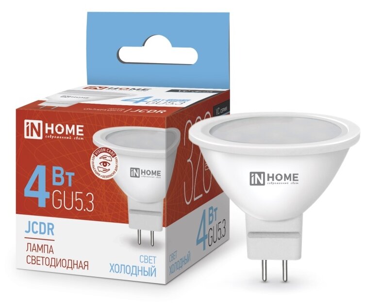 Светодиодная LED лампа LED-JCDR-VC 4W 230В GU5.3 6500К 320Лм IN HOME (упаковка 10 штук) 4690612030715
