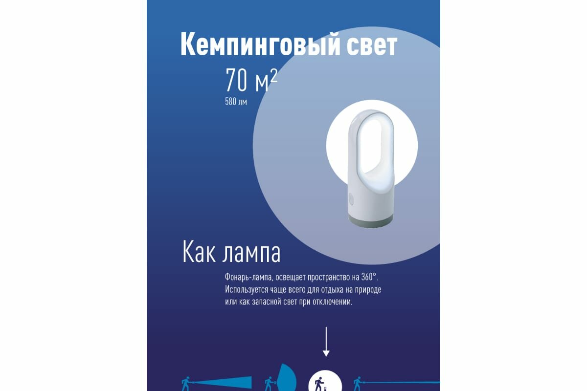 | Дополнительная информация | переключение между режимом фонаря и светильника; тип аккумулятора: Li-ion |