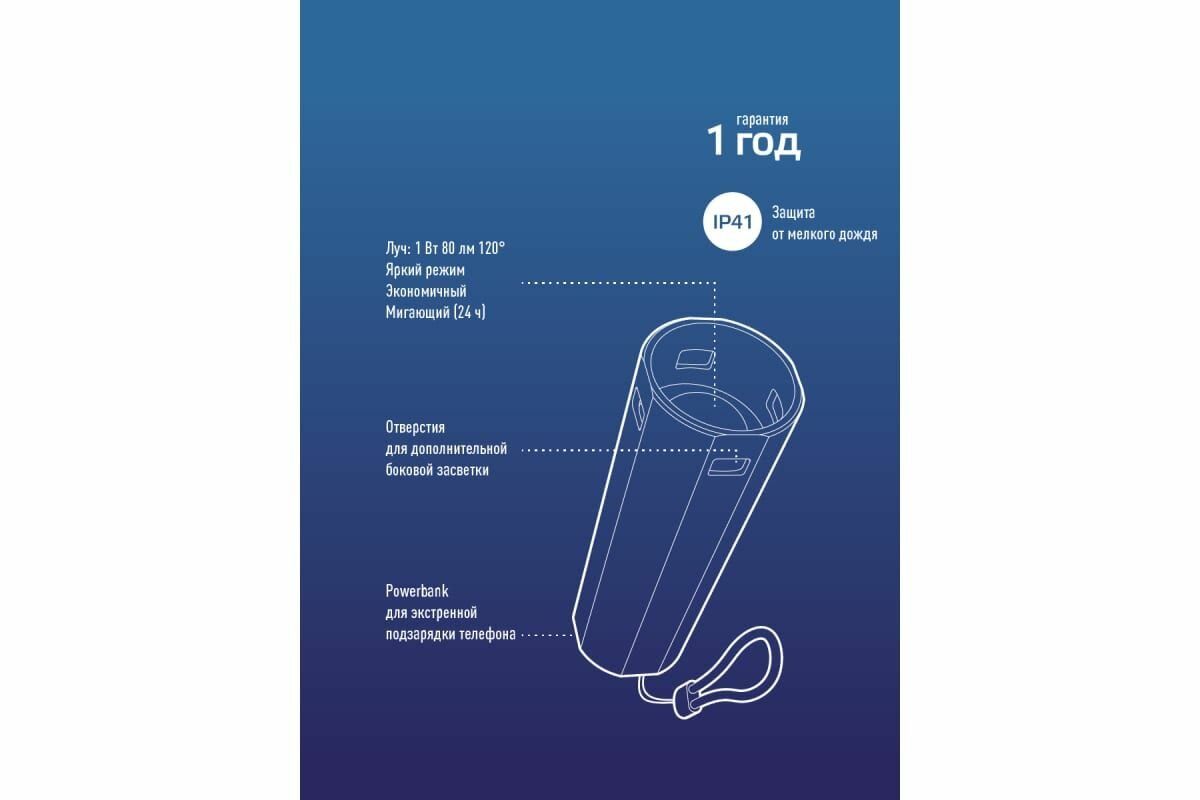 Фонарь аккумуляторный ручной LED 1Вт линза аккум. Li-ion 18650 1.2А.ч Power-bank USB-шнур ABS-пластик космос KOS116Lit