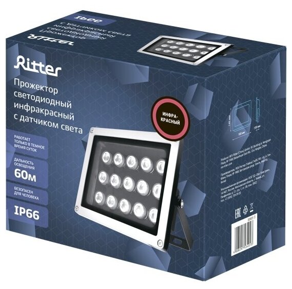 Купить Прожектор светодиодный, инфракрасный, с датчиком освещения, 15Вт, IP66, 53401 3, Ritter, цена за 1 шт.