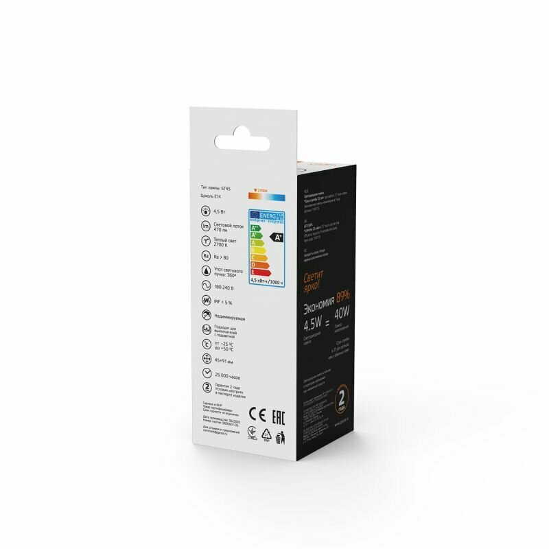 Лампа Gauss Basic Filament, ST45, 4,5W, 470lm, 2700К, Е14, LED 1141115 интересное: