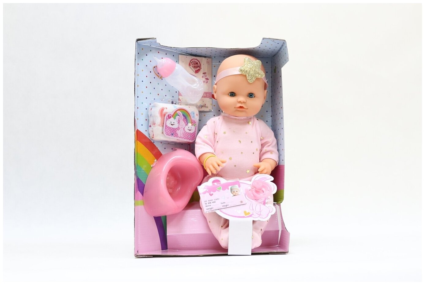 | Комплектация | бутылочка, горшок, подгузник, пустышка, паспорт пупса |
