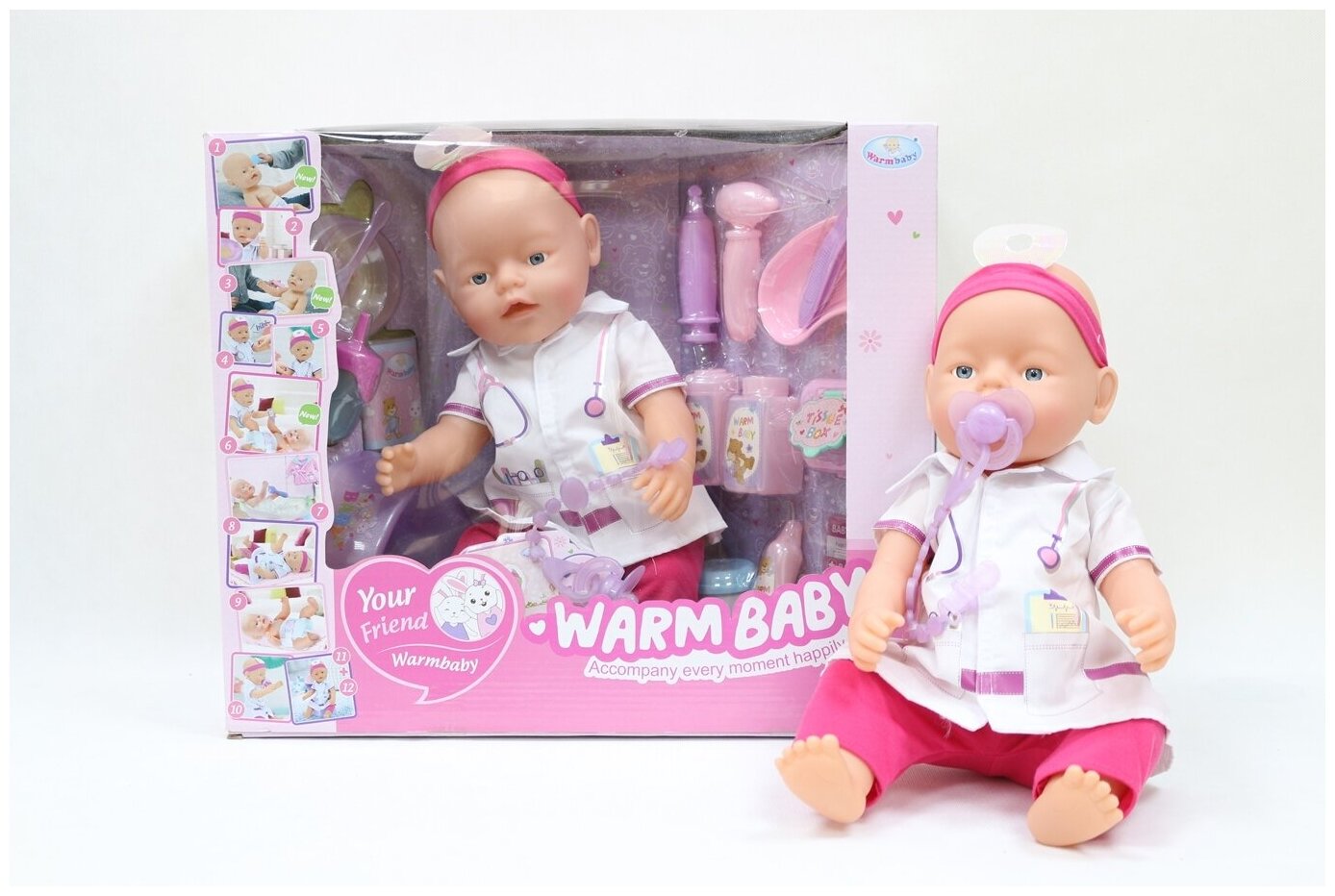 | Комплектация | аксессуары доктора,горшок, тарелочка, ложечка ,соска, бутылочка. |