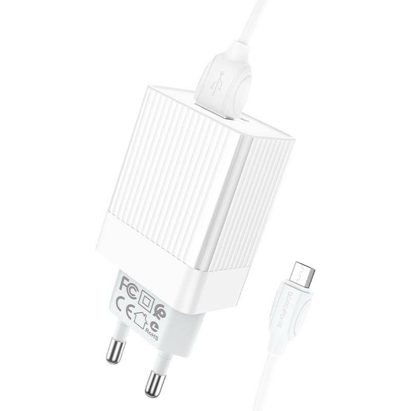 Сетевое зарядное устройство Borofone BA47A Mighty speed + кабель microUSB, 18 Вт, Global, white