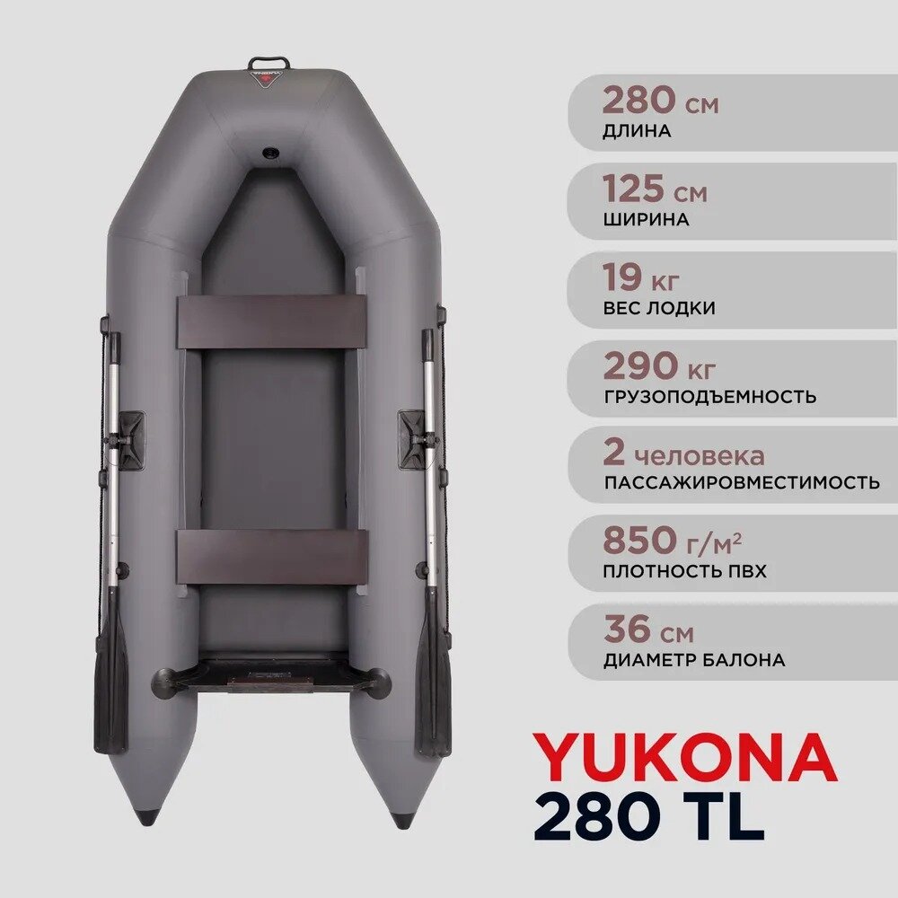 Надувная гребная лодка ПВХ YUKONA 280 TL под мотор, серая интересное: