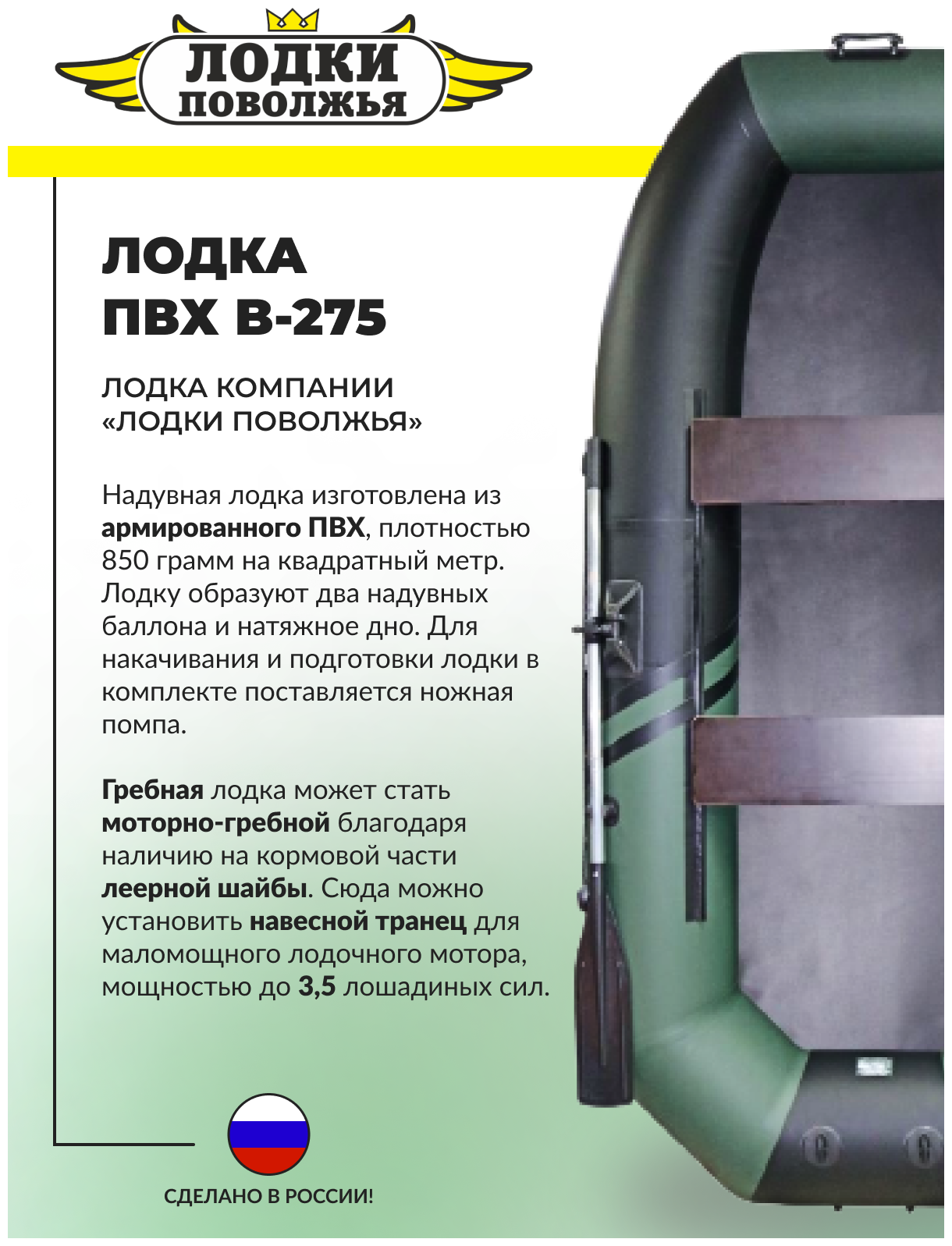 Лодка ПВХ надувная Лодки Поволжья B-275 двухместная для рыбалки под мотор, зеленый/черный интересное: