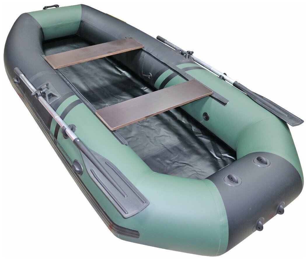 Купить Лодка ПВХ надувная Лодки Поволжья B-275 двухместная для рыбалки под мотор, зеленый/черный