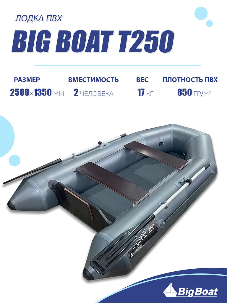 Купить Надувная лодка для рыбалки плоскодонная ПВХ под мотор Big Boat Т250