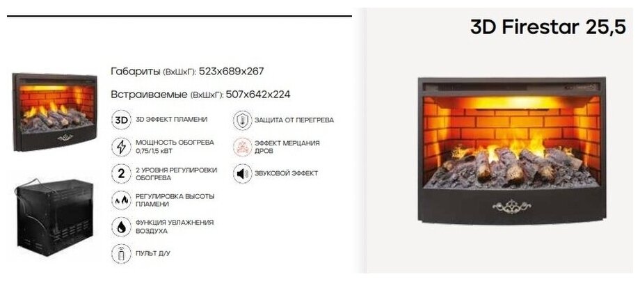 Электрокамин Real Flame History 25,5 WT-F716 с очагом 3D Firestar 25,5 интересное: