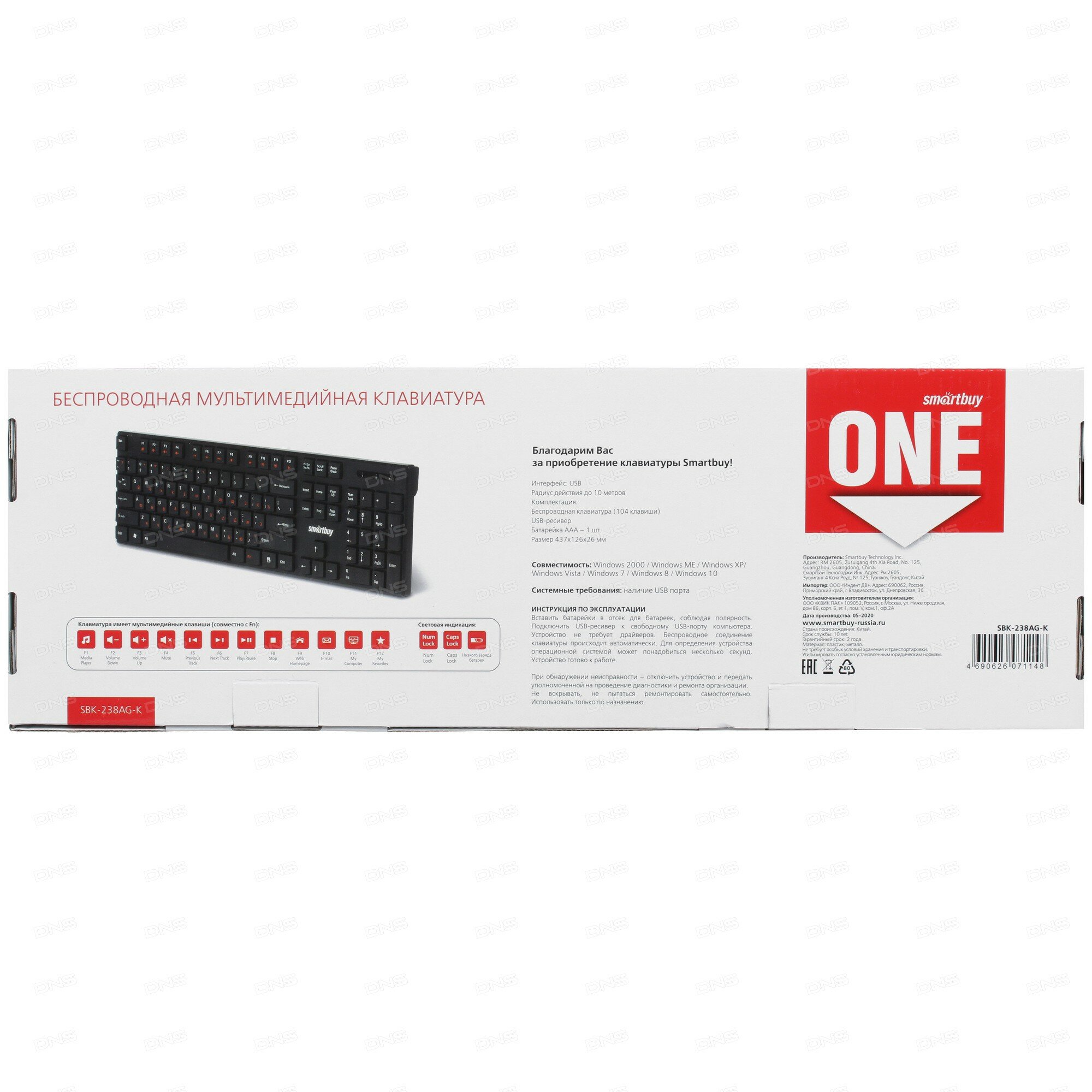 Клавиатура SmartBuy беспроводная, ONE 238, мультимедийная, USB, черная (SBK-238AG-K)