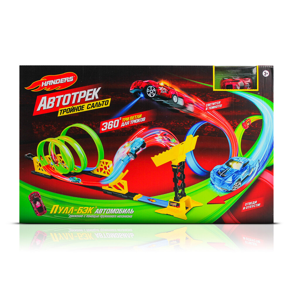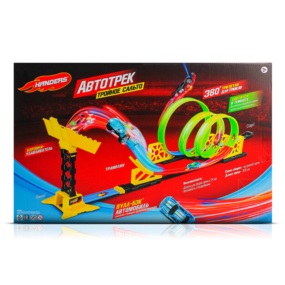 Купить Игровой набор Handers "Автотрек: Тройное сальто" (светится, длин. трассы 300 см, 24 дет., светящ. ма