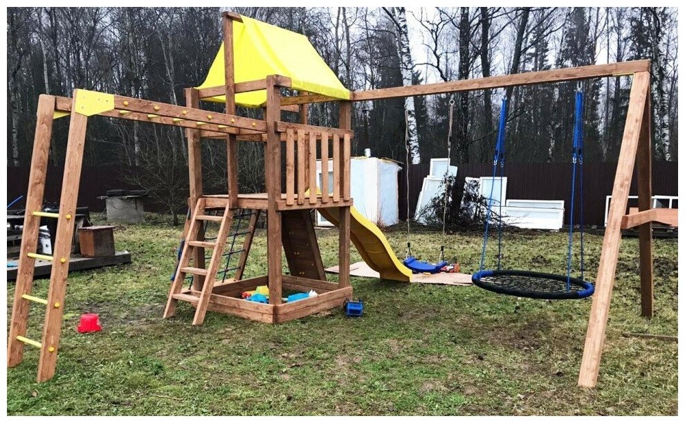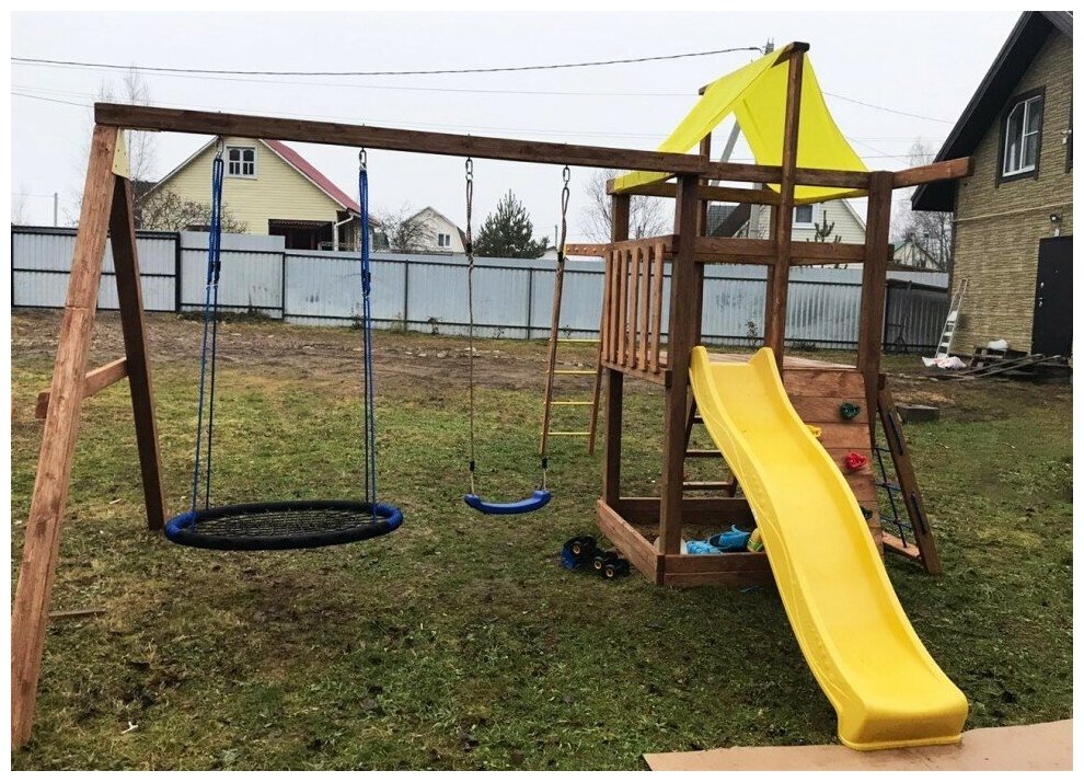 | В комплекте | горка, качели, лестница, навес, турник |