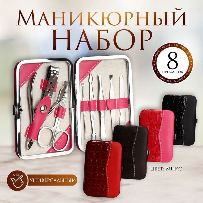 Набор маникюрный, 8 предметов, в футляре, цвет микс