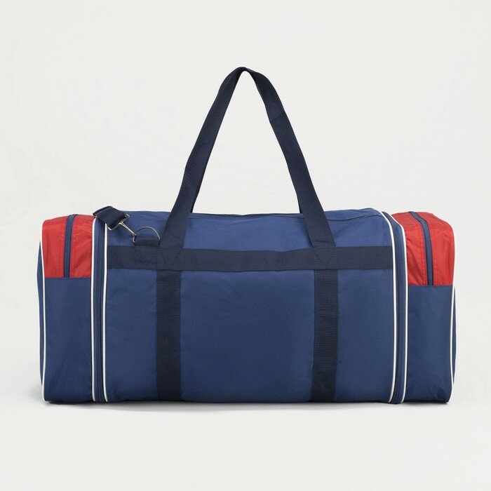 Сумка дорожная на молнии, с увеличением, 3 наружных кармана, длинный ремень, цвет синий/красный