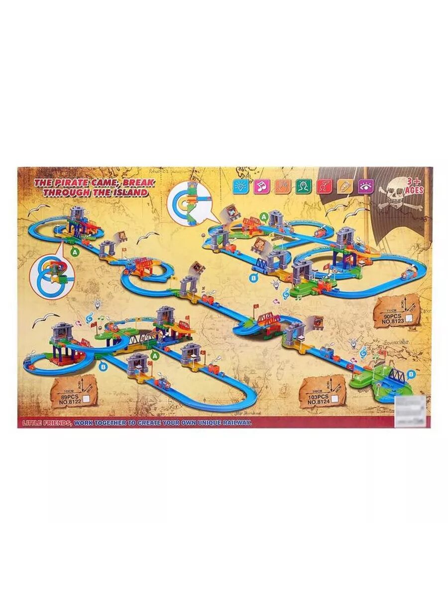 --- Железная дорога "Пиратские истории", работает от батареек, 90 деталей