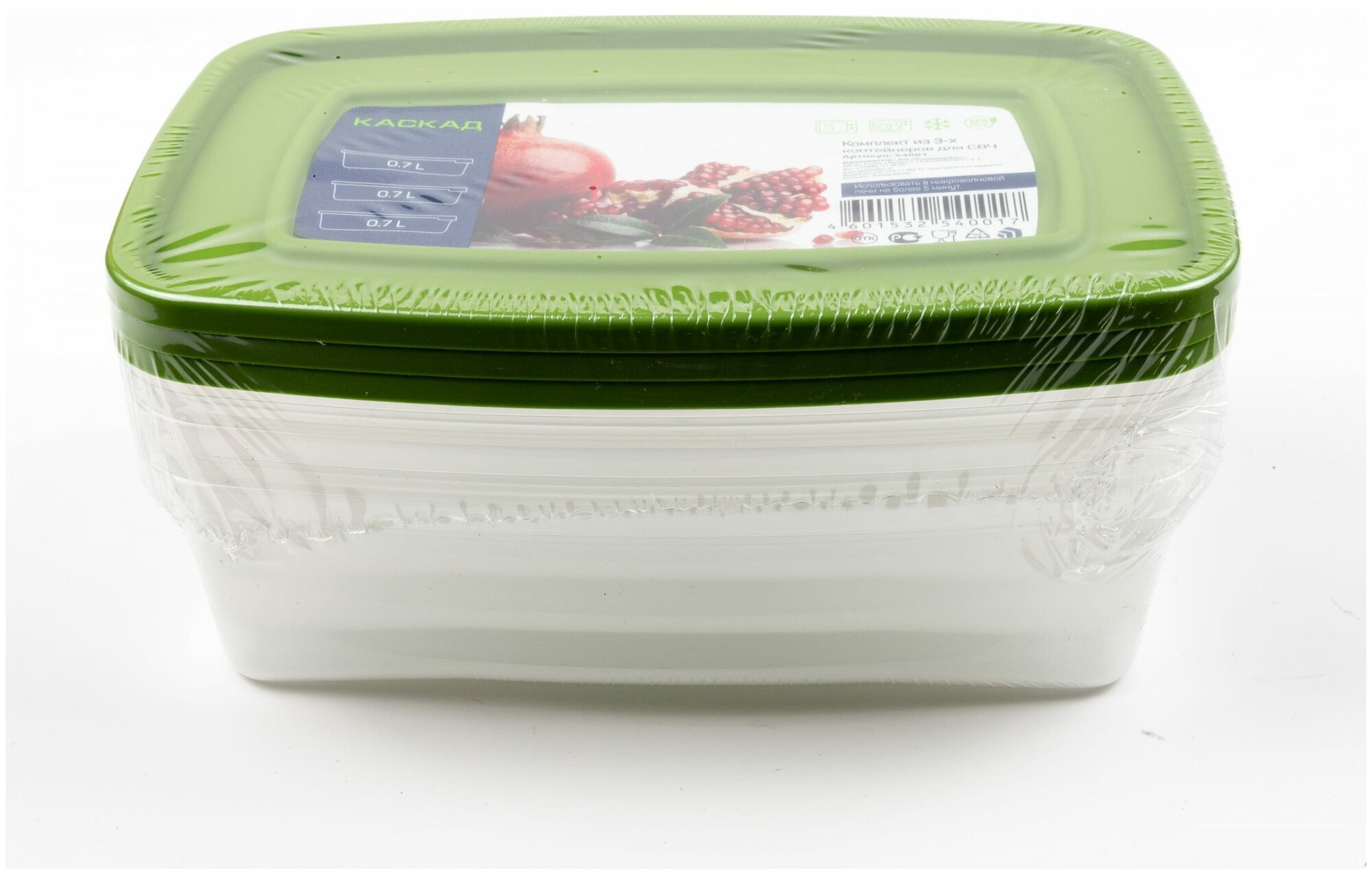Набор контейнеров полимербыт Каскад 3шт 0,7л прям, размер 185х120х85 мм.
