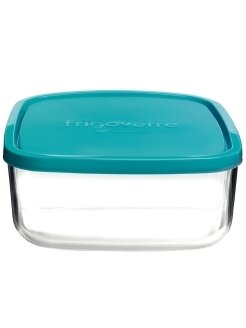 Стеклянный контейнер Frigoverre Bormioli Rocco квадратный 19*19 см, 1600 мл, с синей крышкой