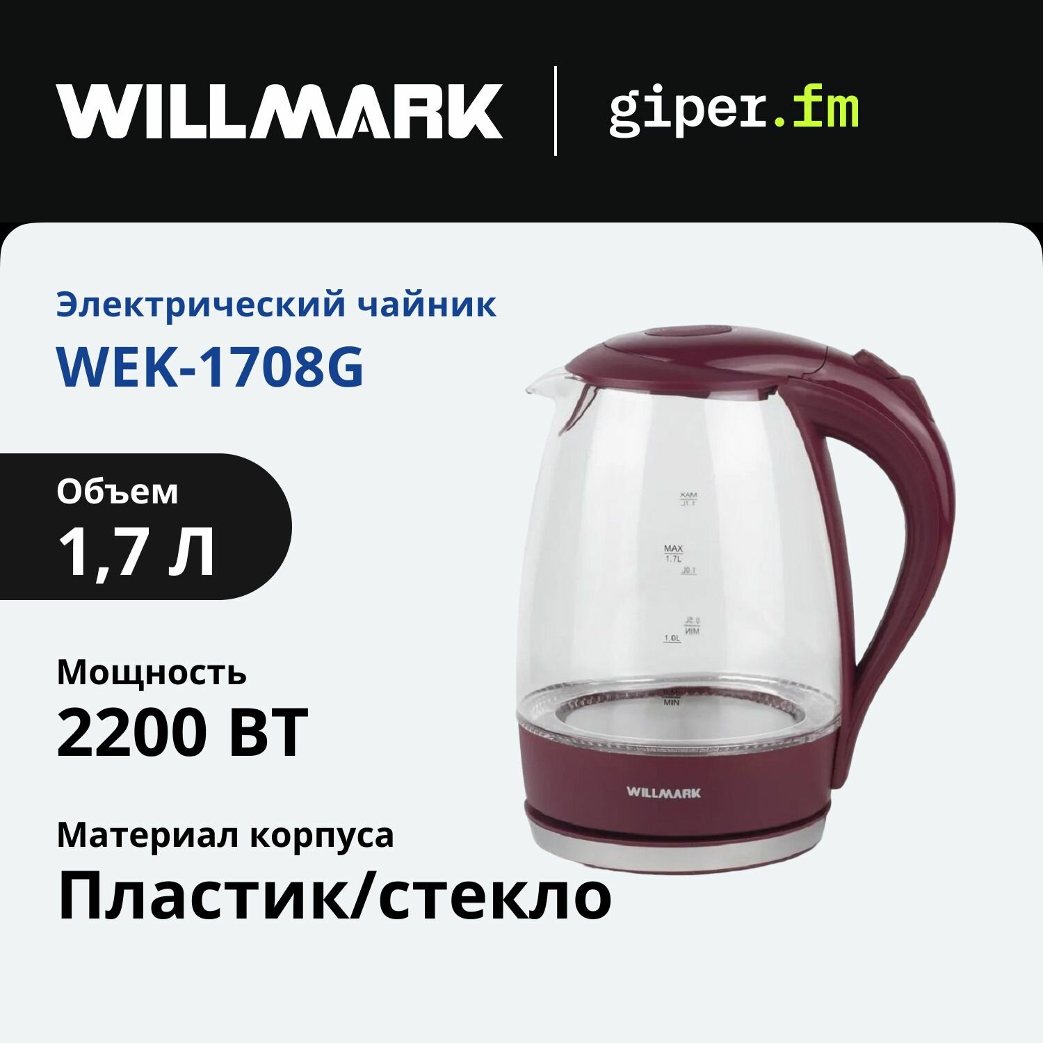 СохранитьЧайник Willmark WEK-1708G бордовый интересное: