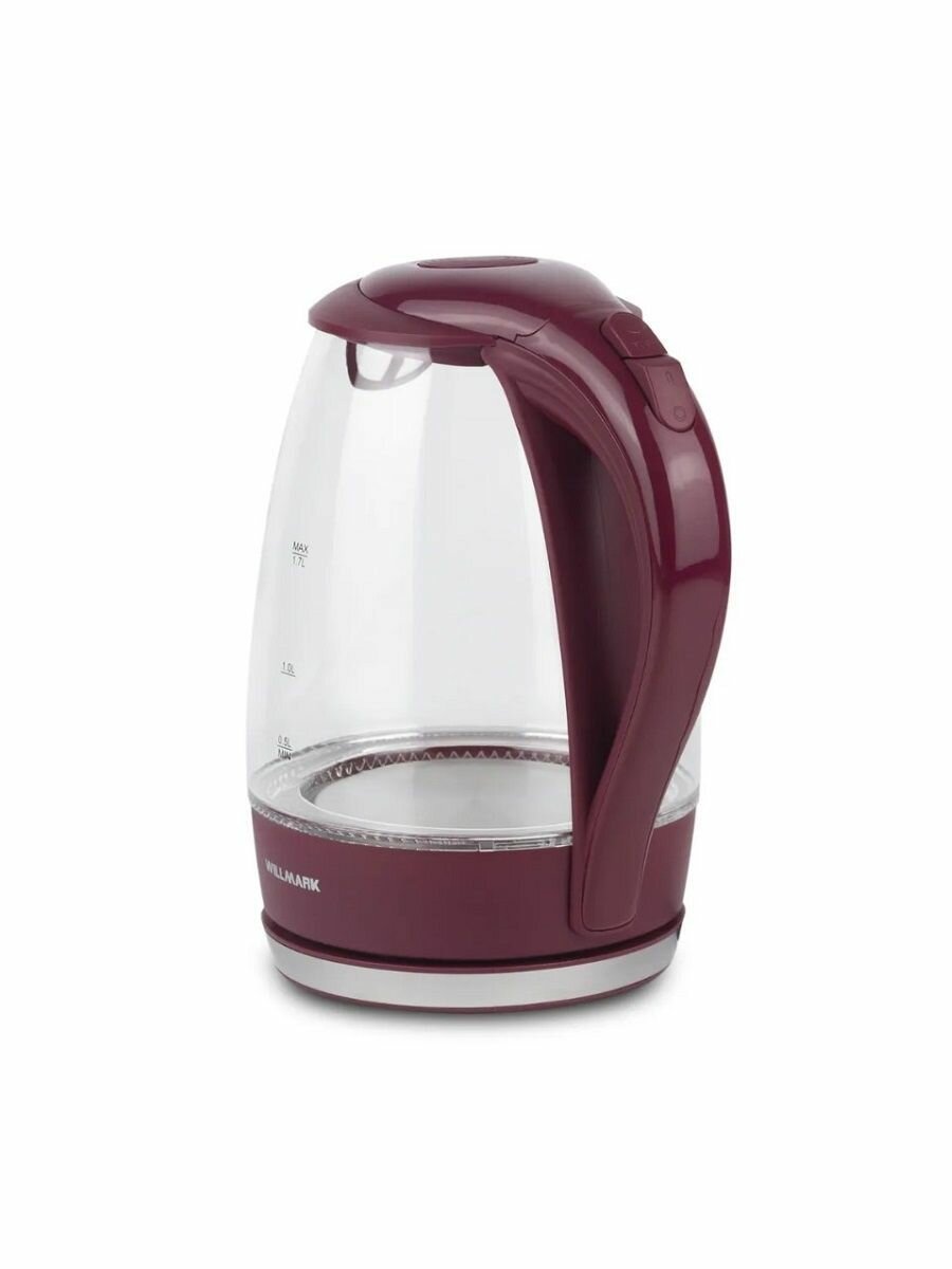 Чайник эл. WILLMARK WEK-1708G (1.7л, пов. на 360 град., LED-подсв., корп. из стекла, 2200Вт) Бордовый