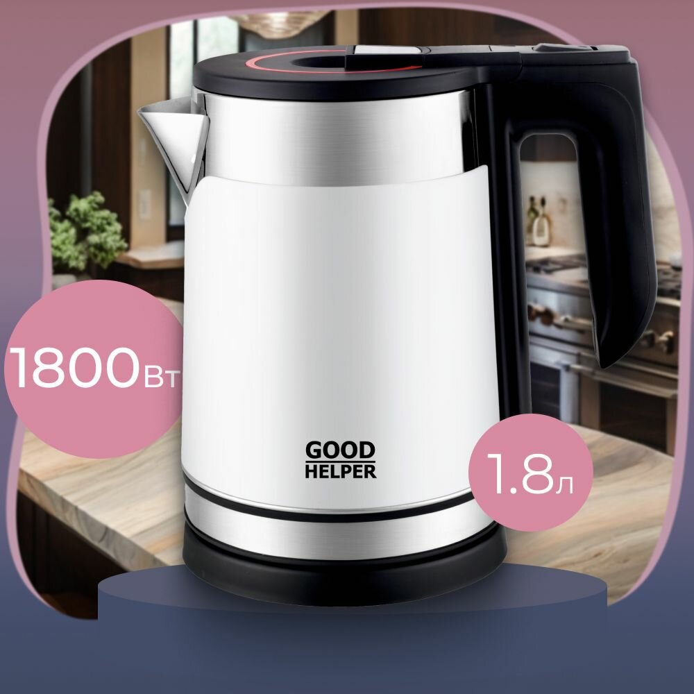Чайник электр. GOODHELPER KPS-185C (диск, 1,8л) 1,8кВт, двойной копус, нержавеющая сталь/пластик, белый