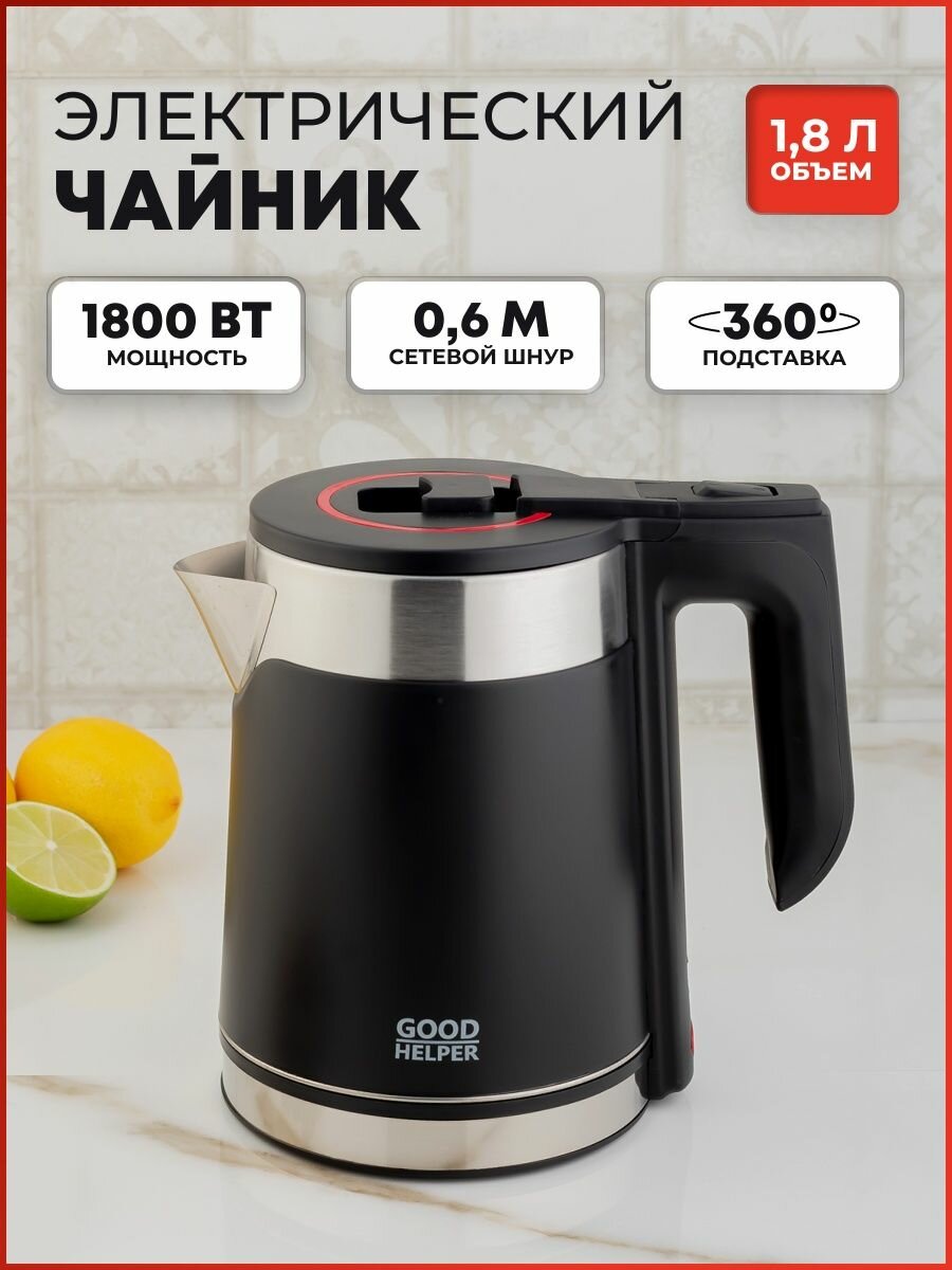 Чайник электрический GOODHELPER KPS-185C, пластик, колба металл, 1.8 л, 1800 Вт, чёрный