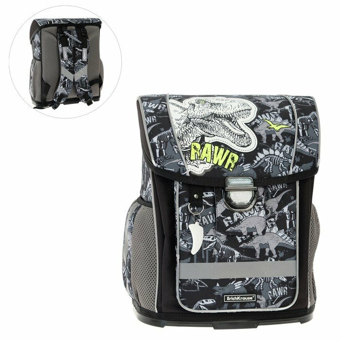 Ранец на замке Erich Krause ErgoLine 16L, 37 х 30 х 16 см, жёсткое дно, Dinosaur Park, серый ErichKr .