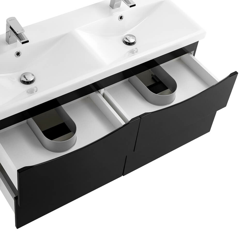 Тумба с раковиной на две чаши четырьмя ящиками подвесная BelBagno MARINO-CER 120 Nero Lucido, раковина белая