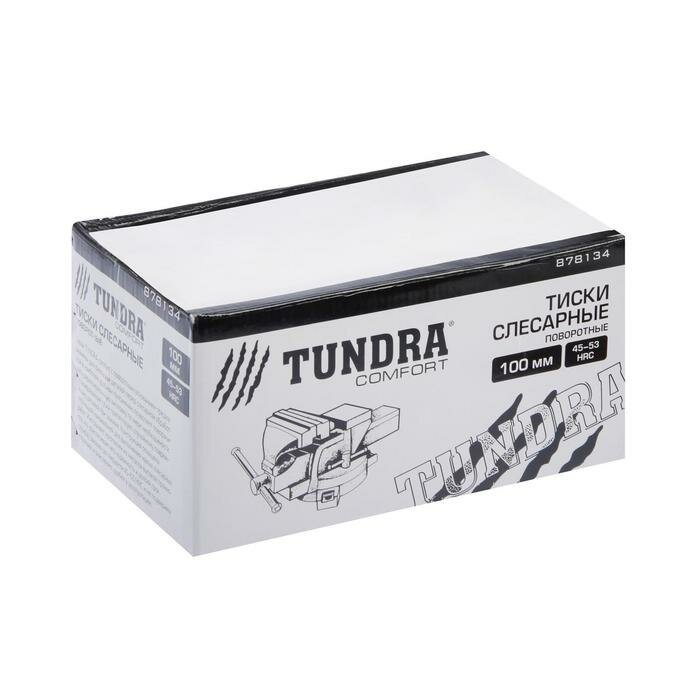Купить Тиски слесарные поворотные TUNDRA, с наковальней, высокопрочный чугун ВЧ-40, 100 мм TUNDRA 878134 .