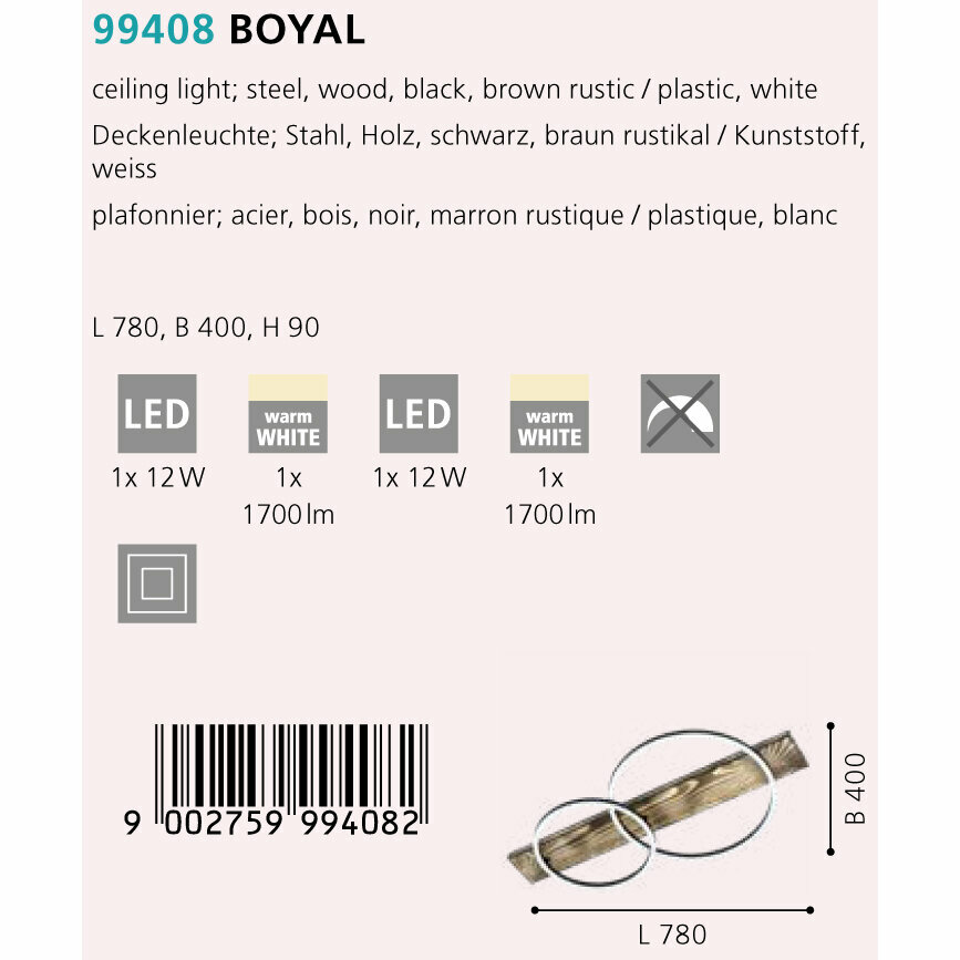 Потолочная люстра Eglo Boyal 99468, Дерево, LED
