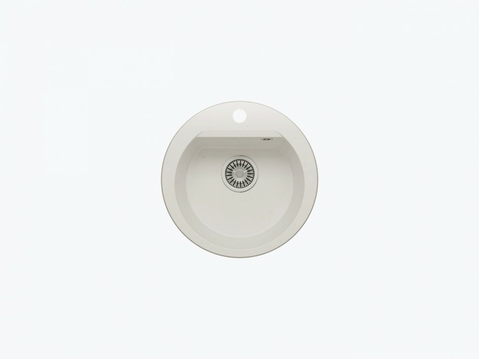 Мойка для кухни POLYGRAN ATOL-460 каменная, врезная, раковина кухонная, круглая с отверстием под смеситель (№36 Белый Хлопок)