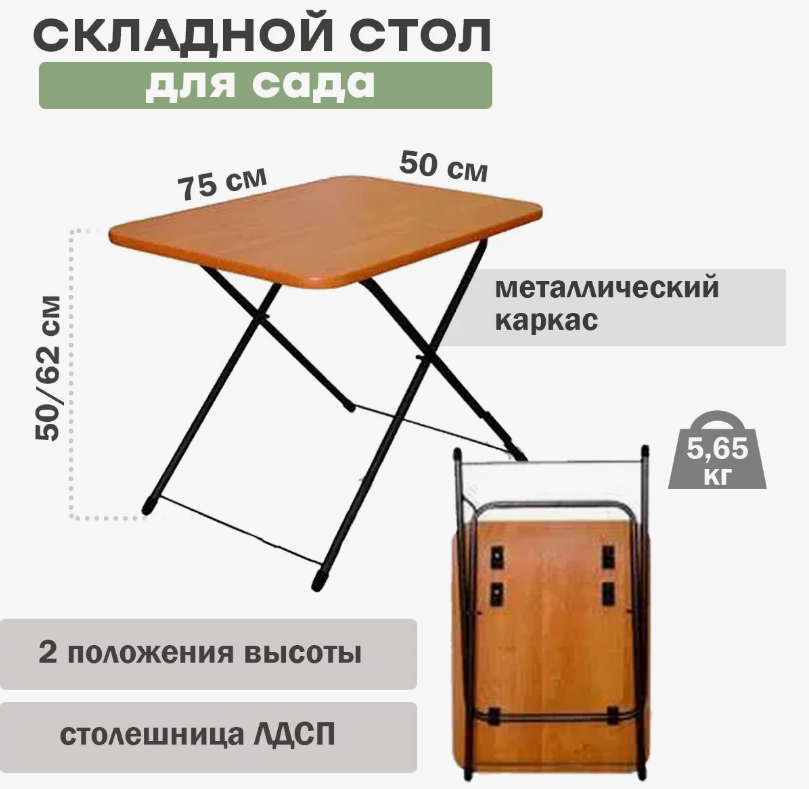 | Отзыв: | Стол очень удобный. Имеет два уровня высоты стола. Занимает мало места в сложенном состоянии. Хорошо подходит для дома и пикника |