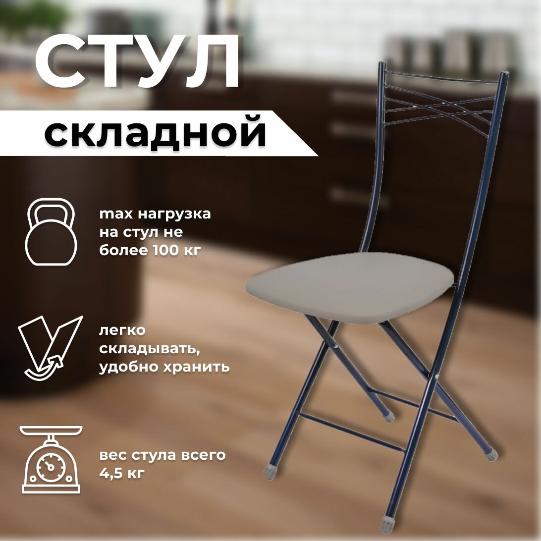 Стул складной "Ника1" с мягким сиденьем, до 100 кг, цвет серый/бежевый