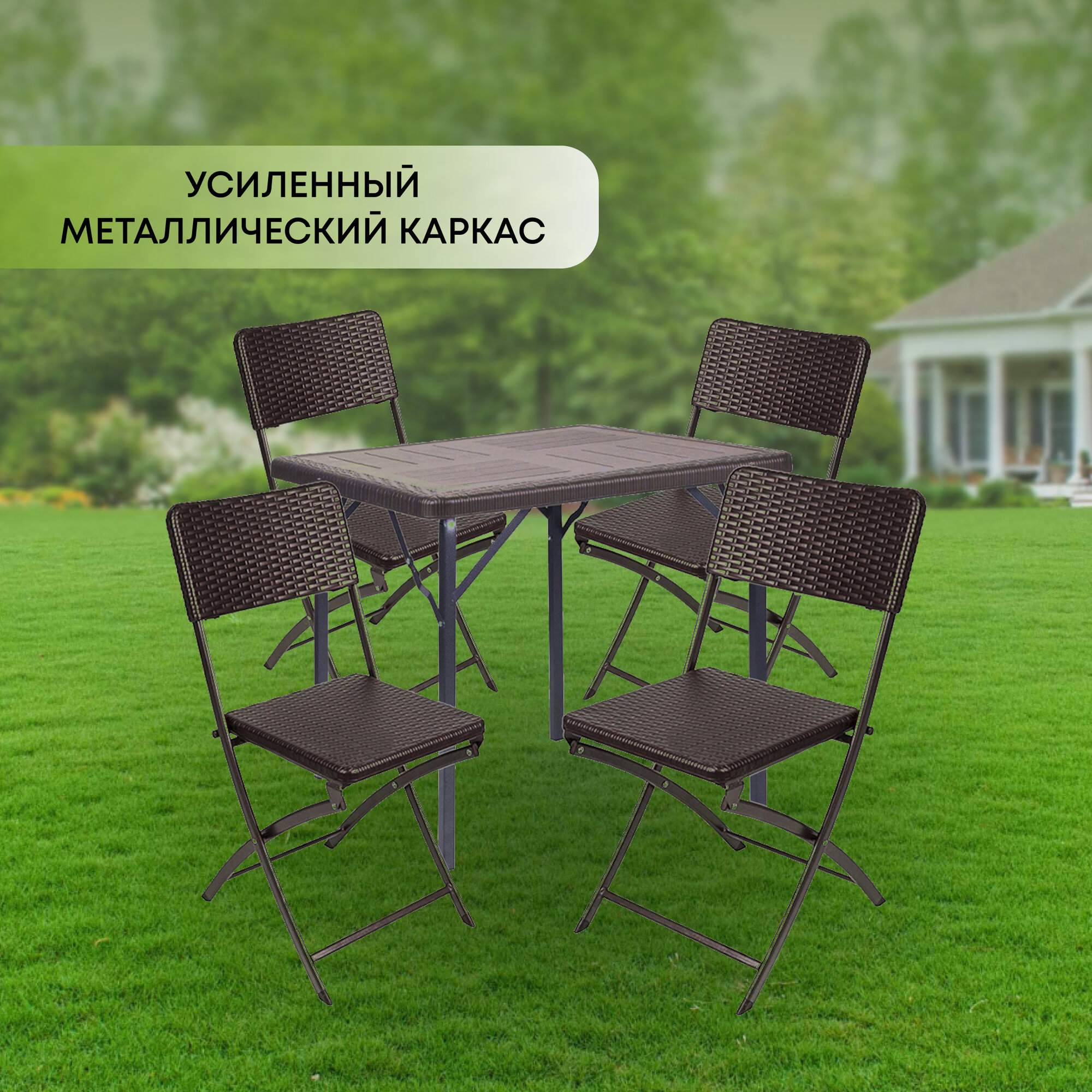 Мебель садовая Green Days, Семейный, коричневая, стол, 78х78х70 см, 4 стула, 120 кг, WAK78+YC-041