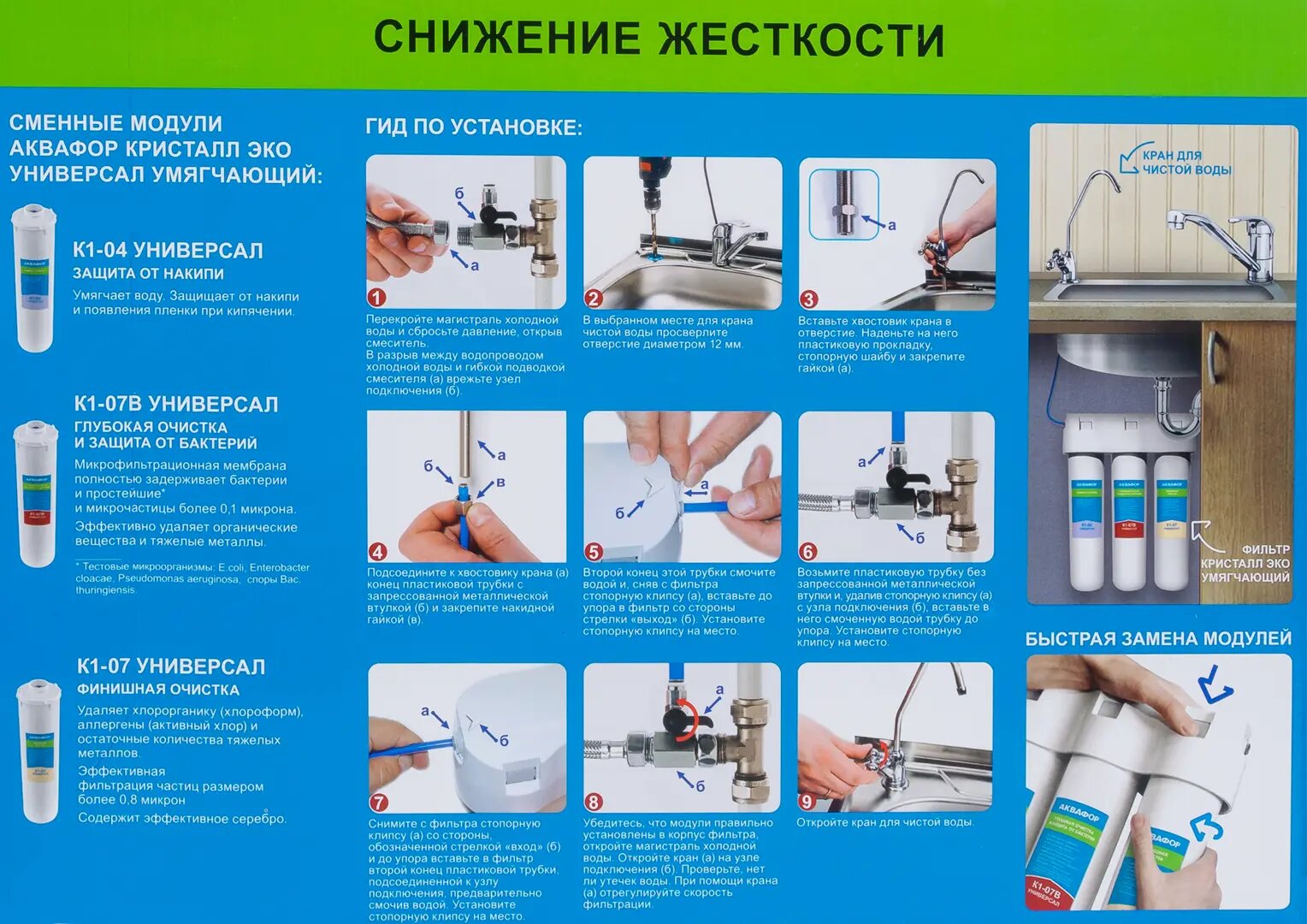 Фильтр Кристалл Аквафор ЭКО Н Универсал для жесткой и железистой воды, защита от бактерий. интересное: