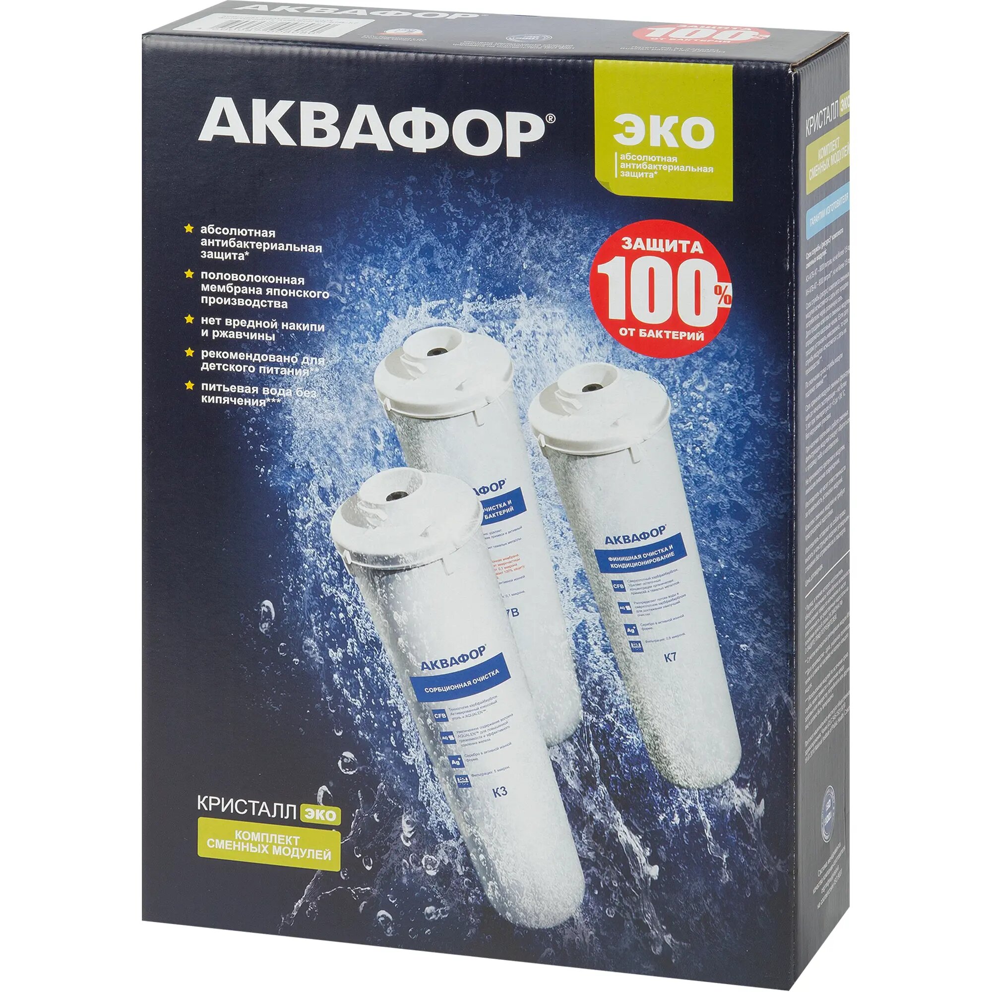 Купить Набор картриджей Аквафор КН-К7В-К7 ЭКО Н для жесткой воды, защита от бактерий