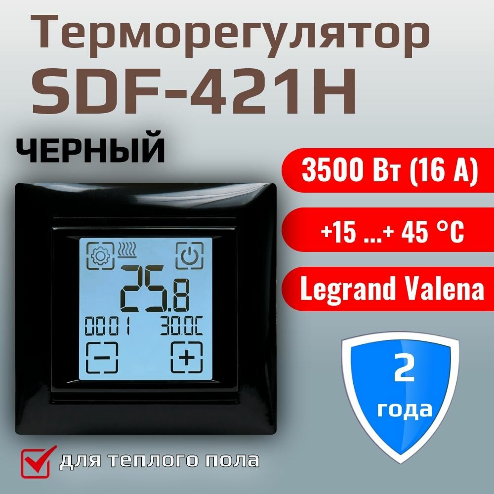 Терморегулятор теплого пола сенсорный программируемый SpyHeat SDF-421H (встраиваемый) черный, под рамку Legrand Valena