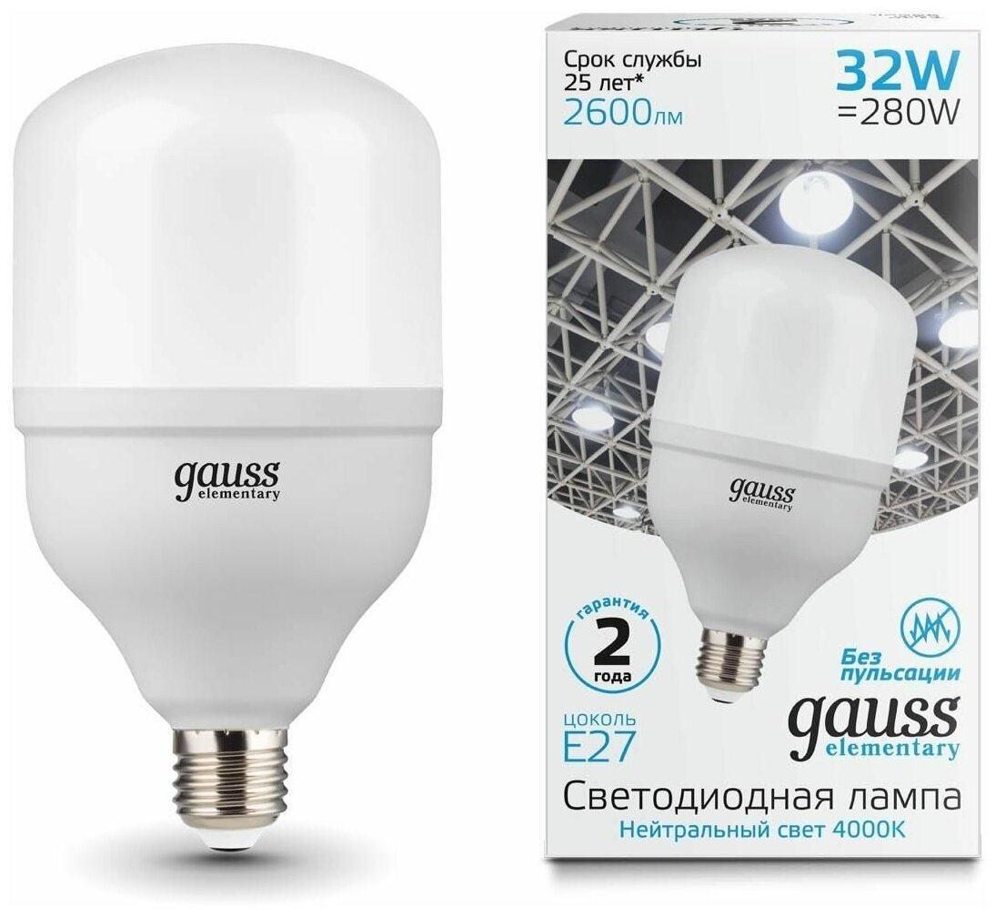 Лампа LED GAUSS Elementary T100 32W/E27/4000K цилиндр 63223 интересное: