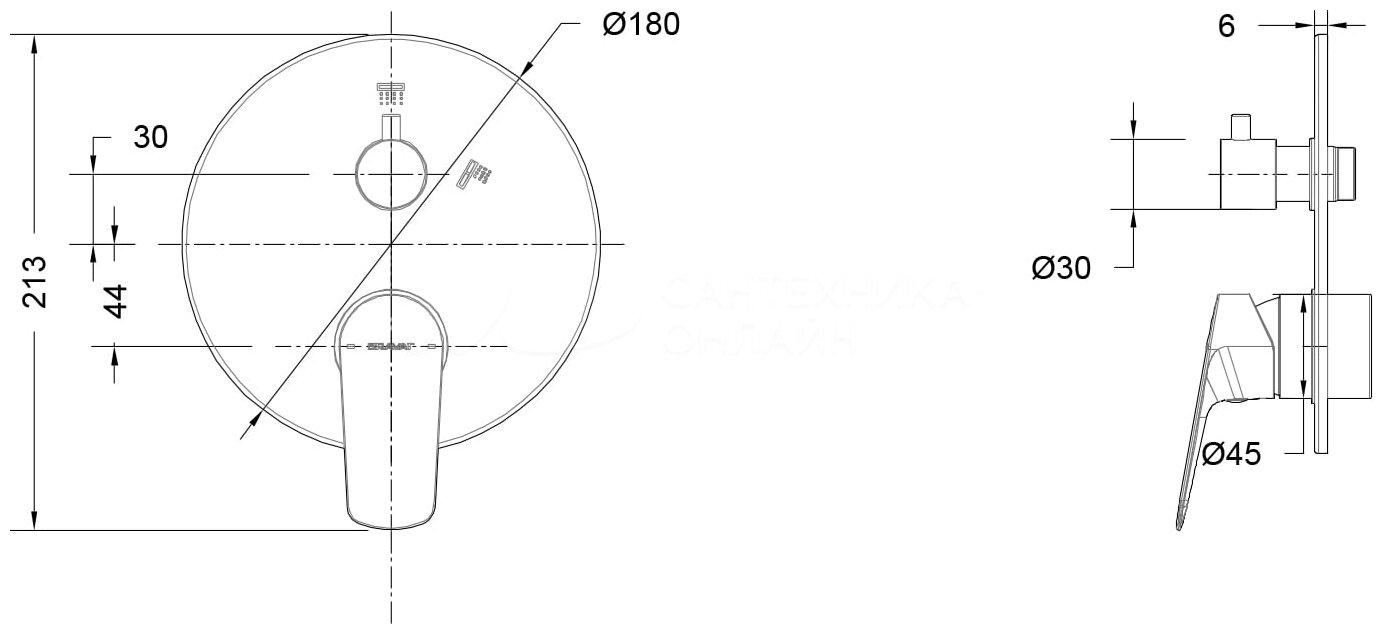 Встраиваемый смеситель 2-функц. Bravat PB8429564CP-2-ENG