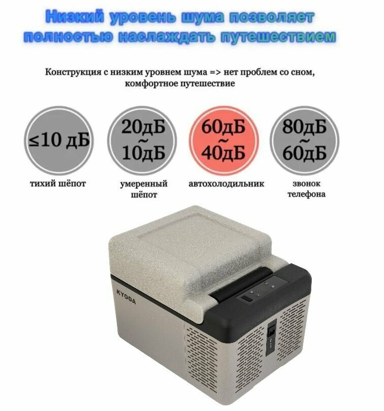 Автохолодильник компрессорный Kyoda CP12, однокамерный, объем 12 л, вес 6,9 кг, дистанционное управление, есть USB интересное:
