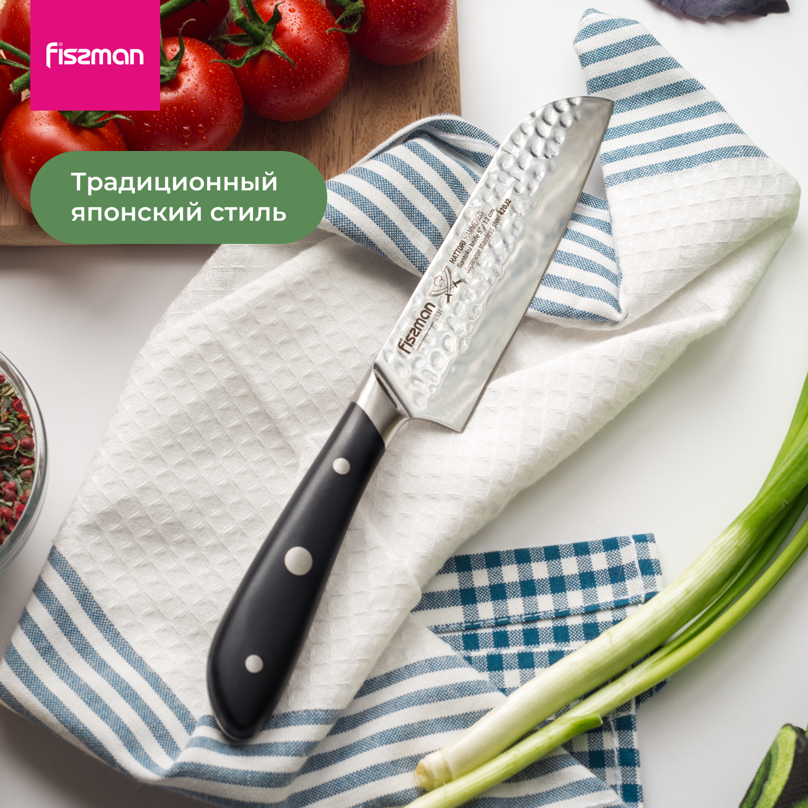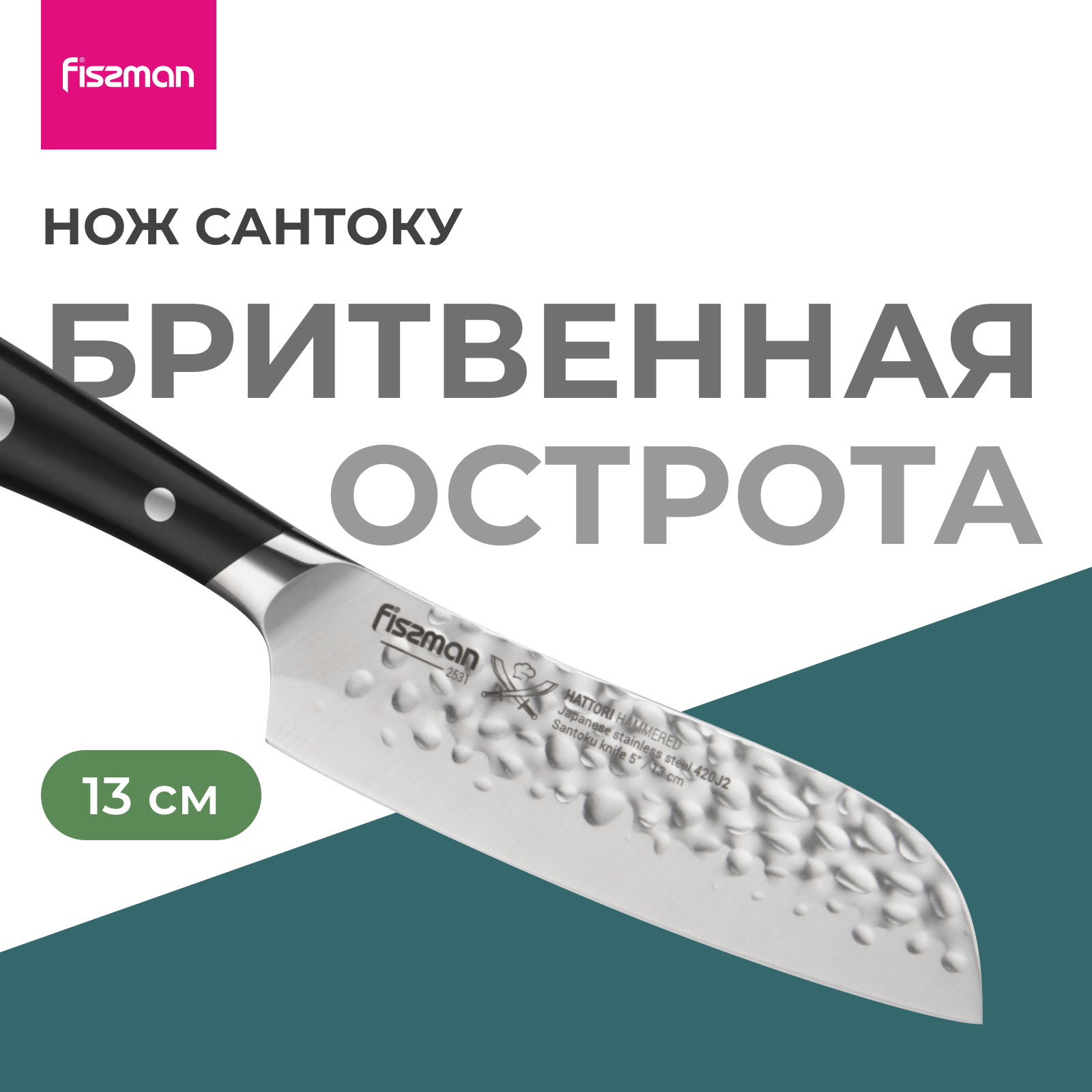 2531 FISSMAN Нож Сантоку 13см HATTORI hammered (420J2 сталь)