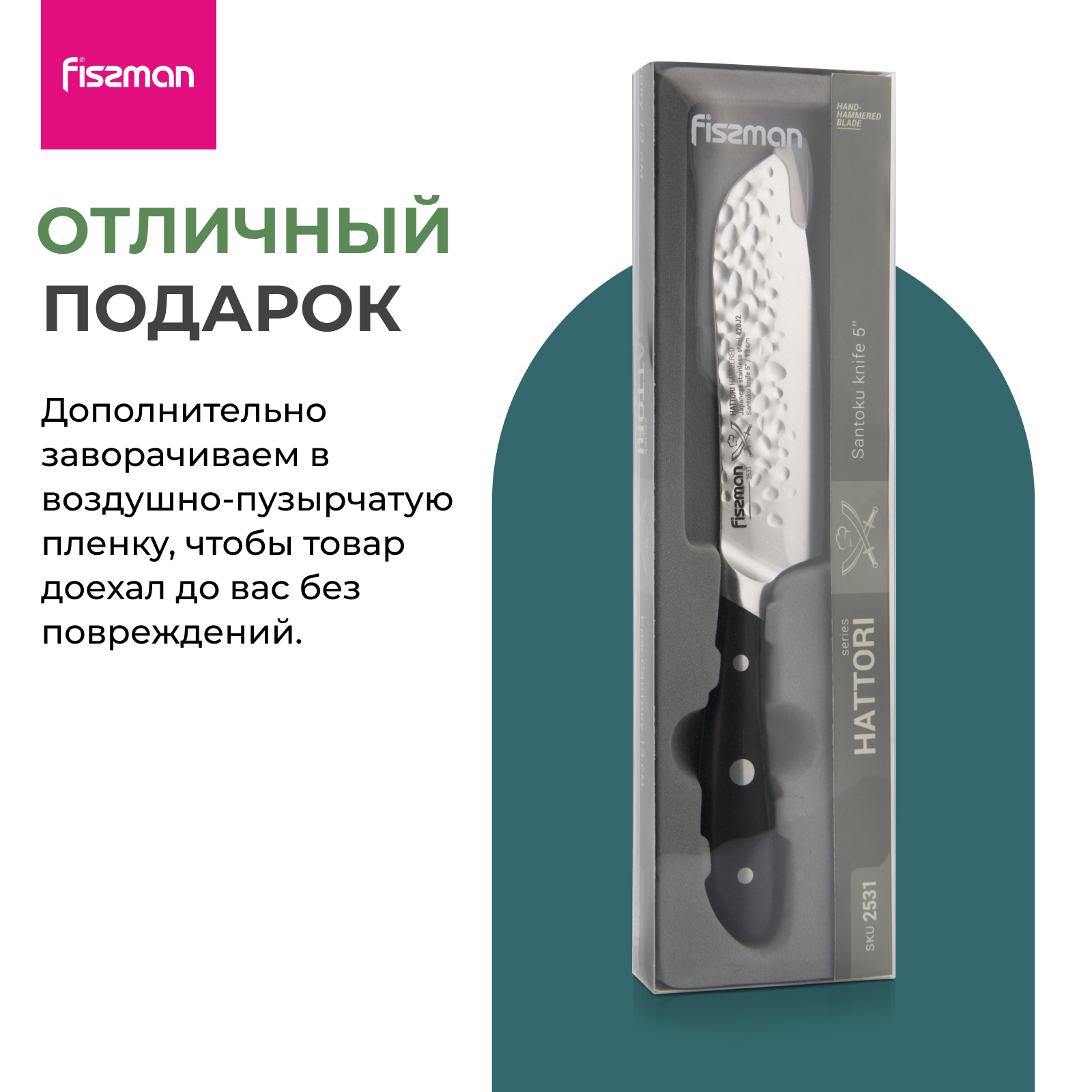 Нож Fissman HATTORI Сантоку 13 см hammered (420J2 сталь) (2531) интересное: