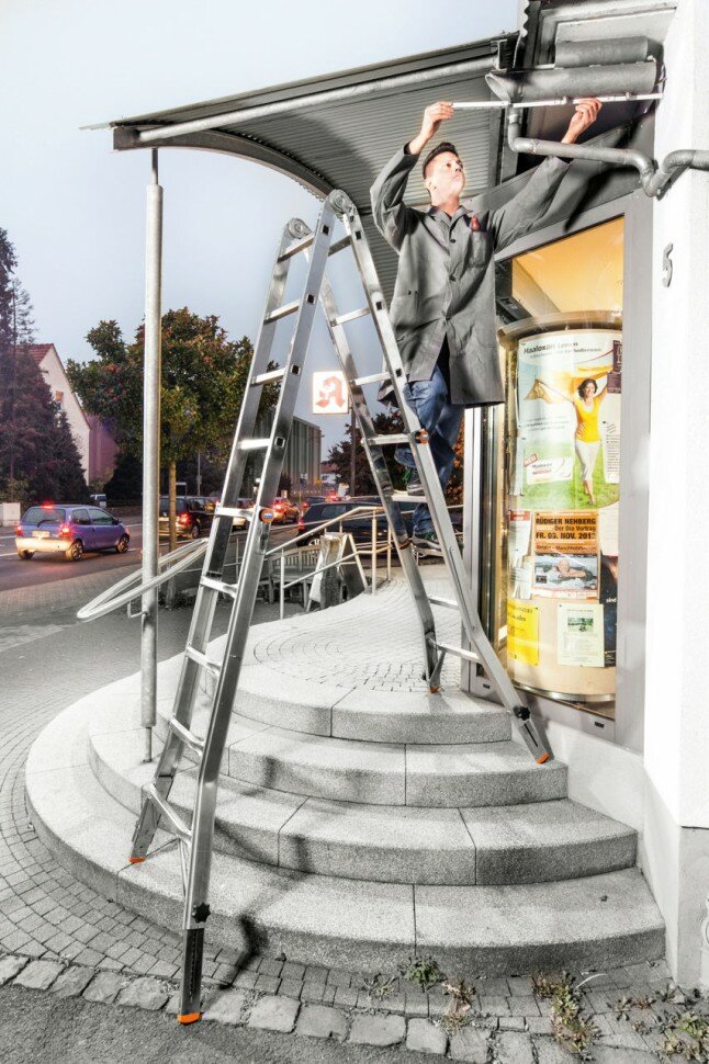 Новая высота Лестница-трансформер 3-х секционная 3×7 ступеней, 3×1,9 м, высота 4,5 м, нагрузка 150 кг, алюминий, новая высота